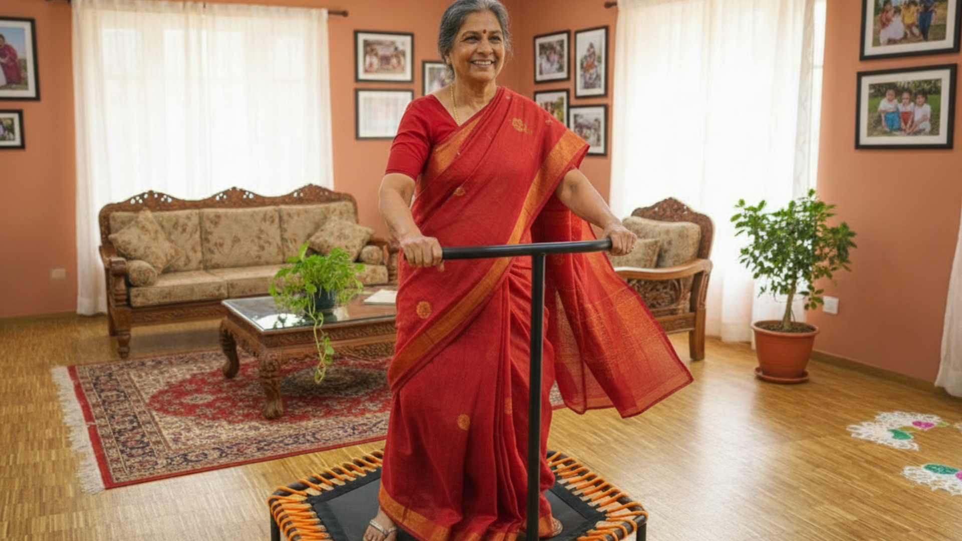 A rebound trampoline with a safety handle is available at the Samarth Store, making it easy to start gentle rebounding at home. For added confidence, Samarth also offers professional guidance to help you practise safely and choose movements suited to your body and health needs.